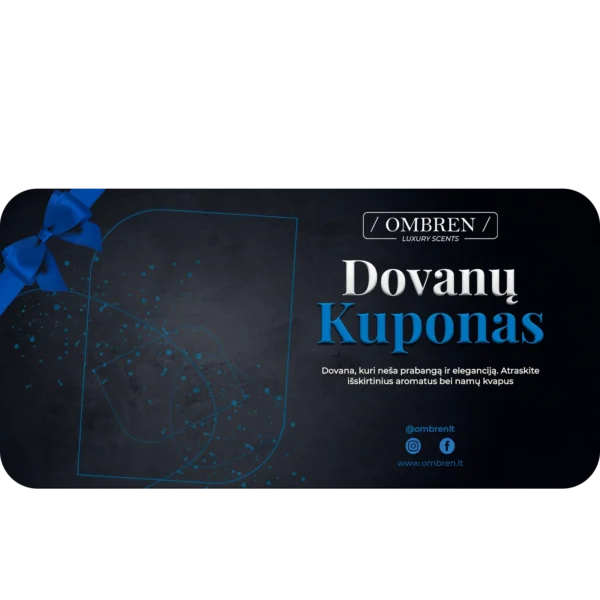 Ieškote ypatingos dovanos, kuri sužavėtų prabanga ir subtilumu ? Ombren e-dovanų kuponas – tai galimybė padovanoti nepakartojamus aromatus ir išskirtinę eleganciją. Leiskite savo artimiesiems atrasti aromaterapijos naudas, prabangius ir išskirtinius namų kvapus, žvakes ar automobilio oro gaiviklius, kurie pripildys kiekvieną erdvę išskirtiniais kvapais. Tai dovana, kuri suteiks ne tik kvapnią patirtį, bet ir ilgalaikį malonumą.